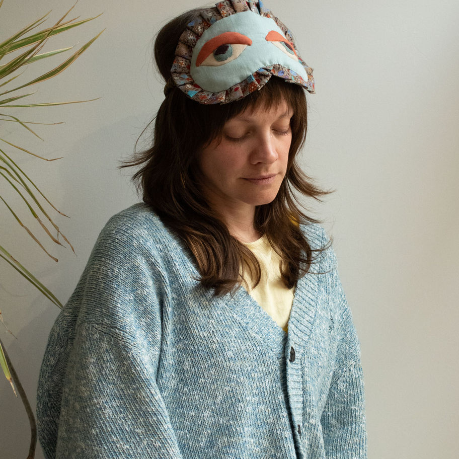 This whimsical handcrafted sleep mask is designed for both comfort and a touch of humor. Our mask is designed for the person who takes their rest as seriously as their style.